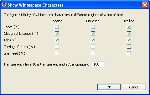 Showing whitespace in Eclipse
